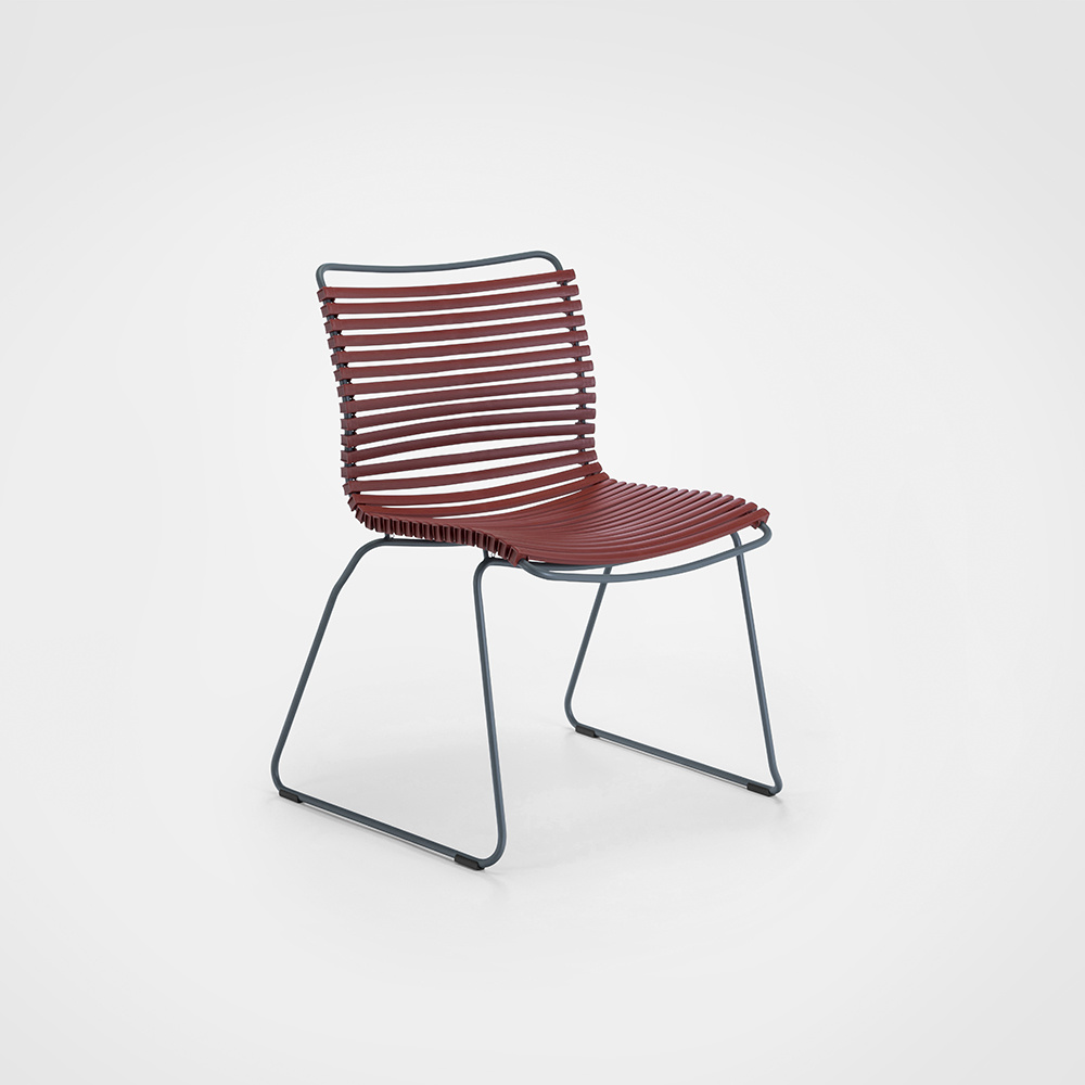 CLICK Dining chair - no armrests. CLICK chair is simple, honest and ergonomically well thought out. It is beautiful in its repetition around the table and because the lamellas can be replaced, you can mix and change the colours as often as you like. CLICK dining chair comes in 3 variants - with or without armrests. CLICK dining chairs are stackable.