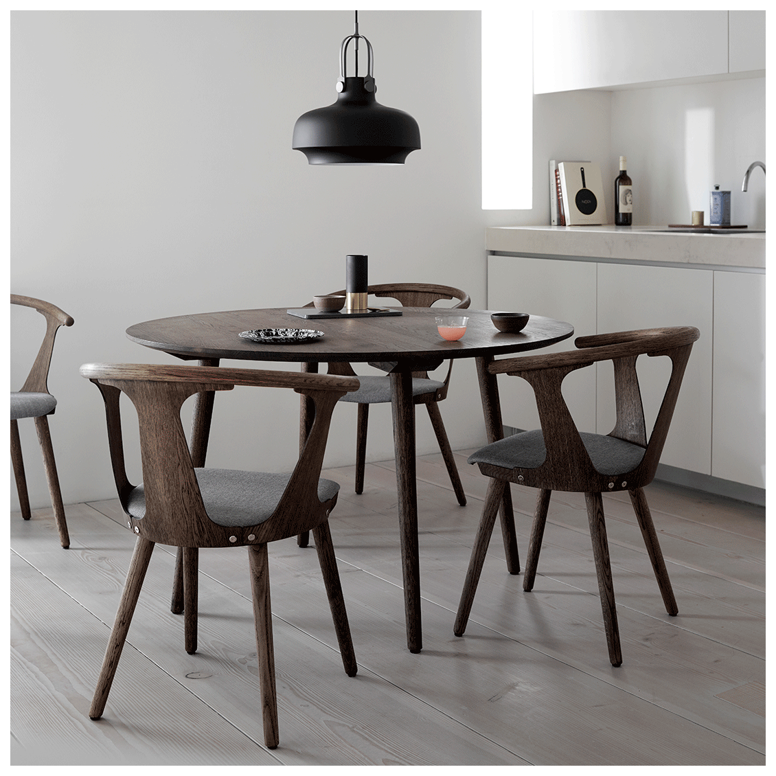 Inbetween tafel 120 Ø gerookte eik